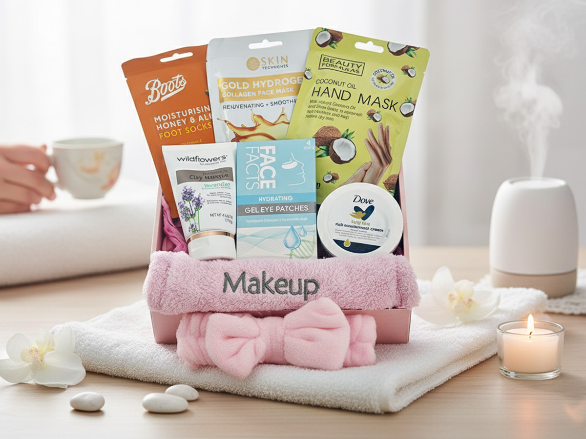 Inside, you’ll find everything you need for a relaxing evening in. The ultra-soft coral fleece microfiber makeup remover wash cloth gently wipes away the day, while the bowknot headband keeps hair neatly away from your face during your pampering routine. Sink your feet into bliss with the Boots honey and almond foot soak, and rejuvenate your skin with our nourishing collagen face mask and hand mask.